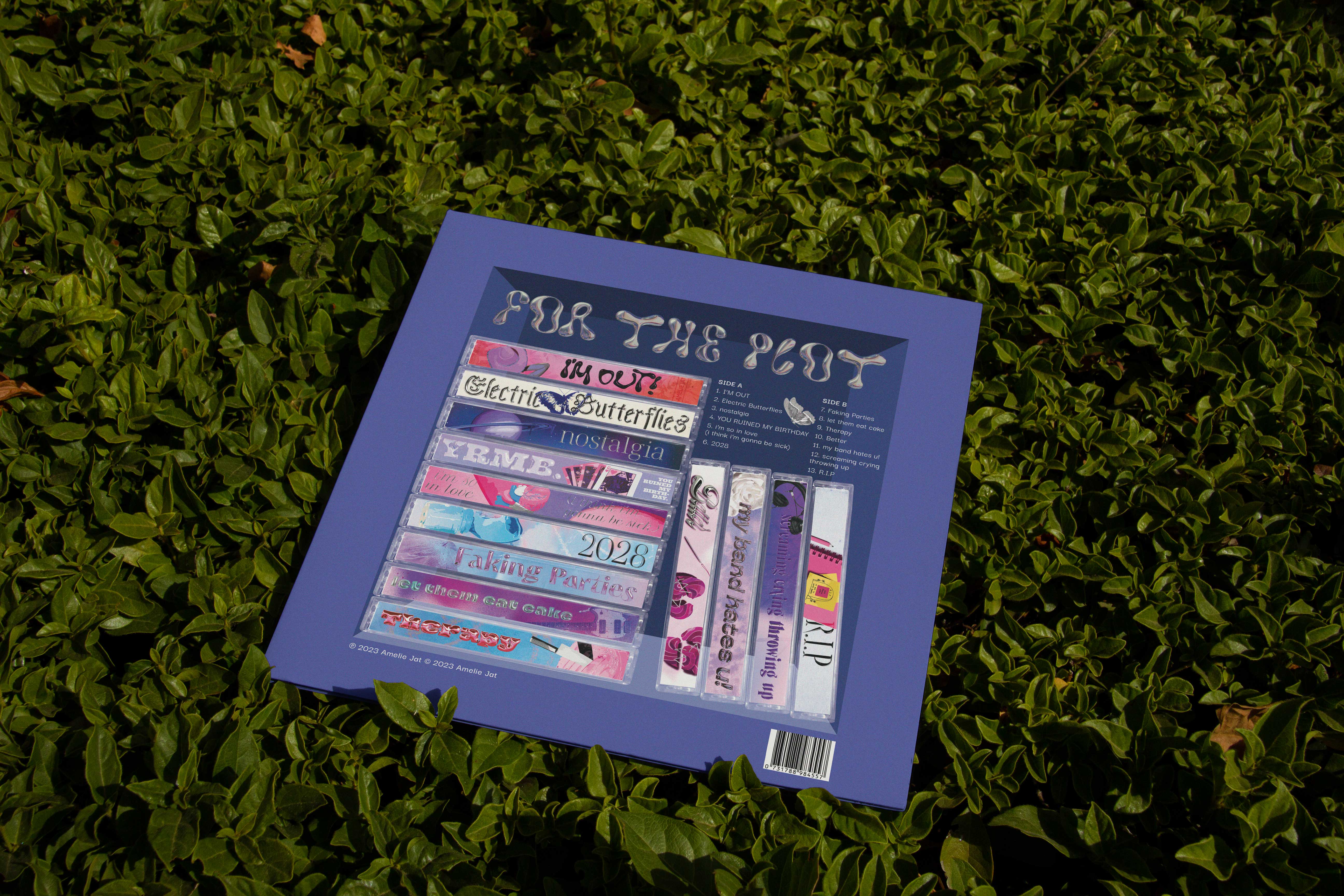 While working for the UK artist, Amelie Jat, she asked me to design a back tracklist as well as the CD plate/vinyl sticker for her new album “for the plot” and prep the files for print. In the process of doing this, we came up with the concept of each song having its own album design in the form of cassette tapes. I designed and mocked up 13 tapes and placed them into the final design seen here. All of the tape designs involved 3D modeling the typography, and Photoshopping the images to fit the concept of each song. After those were completed I compiled them into the final tracklist composition where they were laid out like cassettes on a someone's shelf. The album can be purchased as both a CD and vinyl here on Amelie's website.