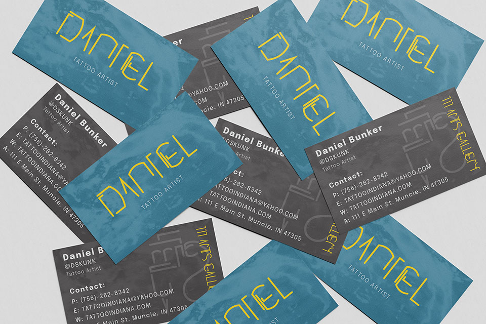 I was tasked with the exercise to re-design a logo for a small business and I chose 111 Arts Gallery and Tattoo Studio in Muncie, IN. My concept was based on Chinese artwork name seals, which tell who either owned or created an artwork. I related this to tattoos and how they can show your identity/the identity of the artist who made it. I created a logo suite and the typeface, which was created from the shapes of the tattoo gun icon. I also designed business cards for each artist and put their name in the same typeface in the logos.
