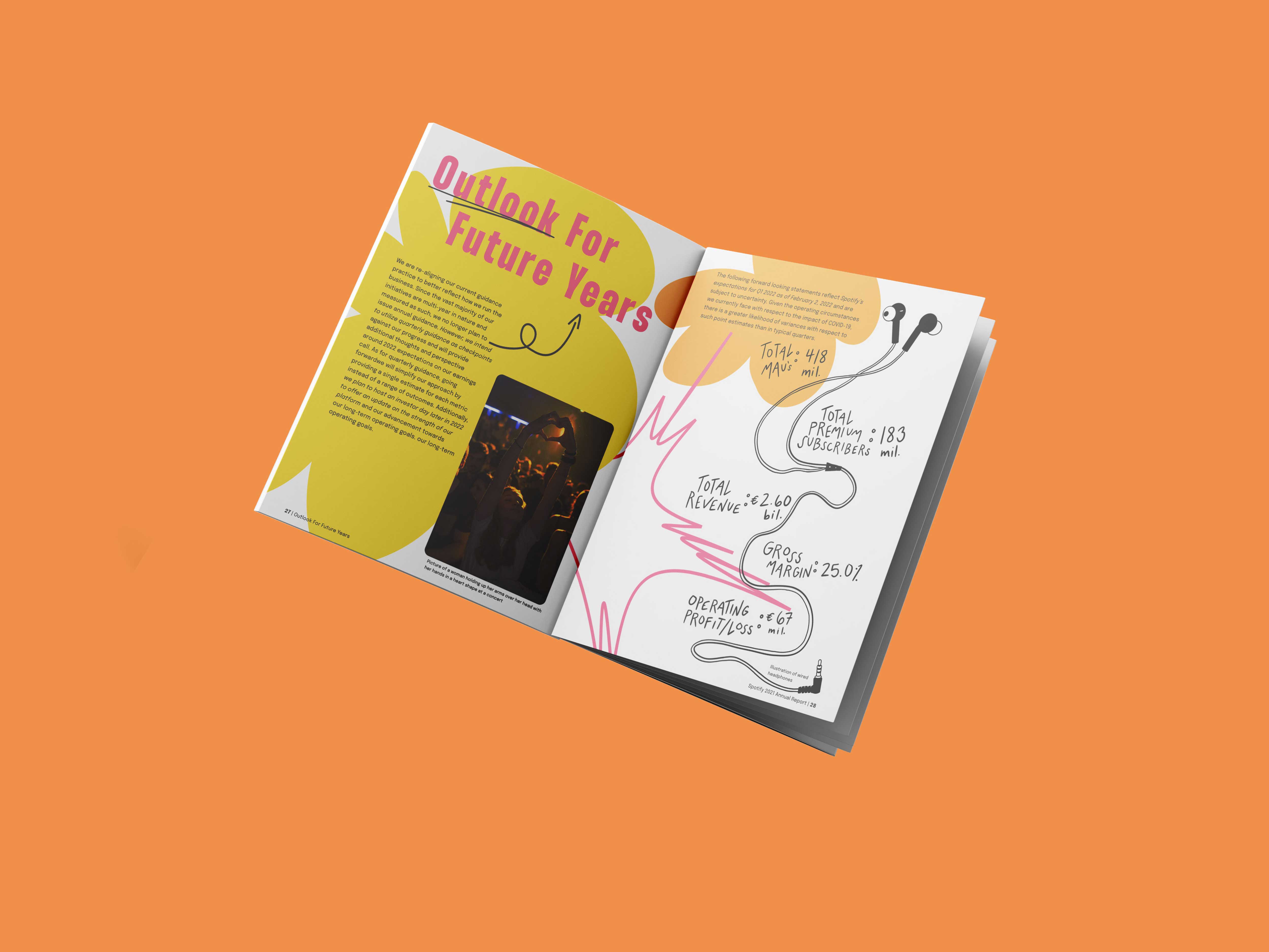 I completed an exercise where I was tasked to redesign an annual report for a company of my choosing. I decided to do this redesign for Spotify since they are a company that I admire and have an aesthetic that I enjoy. Shown here are some of my favorite spreads that I believe has a good show of layout, typography, and unique interpretation of the Spotify brand. My goal was to create an annual report reminiscent of the iconic year-end Spotify Wrapped and to bring a human touch to it as well as a sense of individuality and fun to something normally thought of as boring. All in all, this was an incredibly fun exercise and I enjoyed both the process and the outcome. You can find the full annual report publication here.