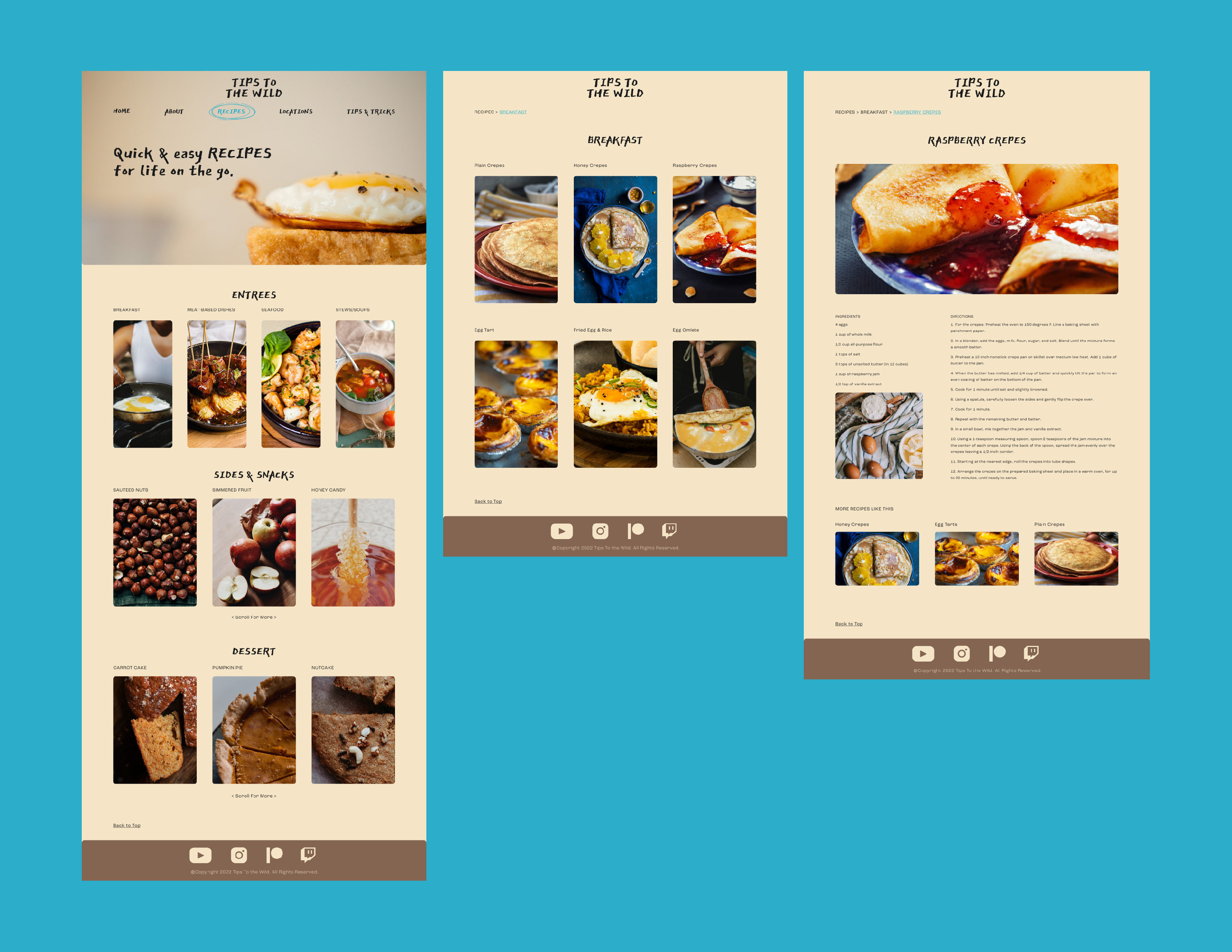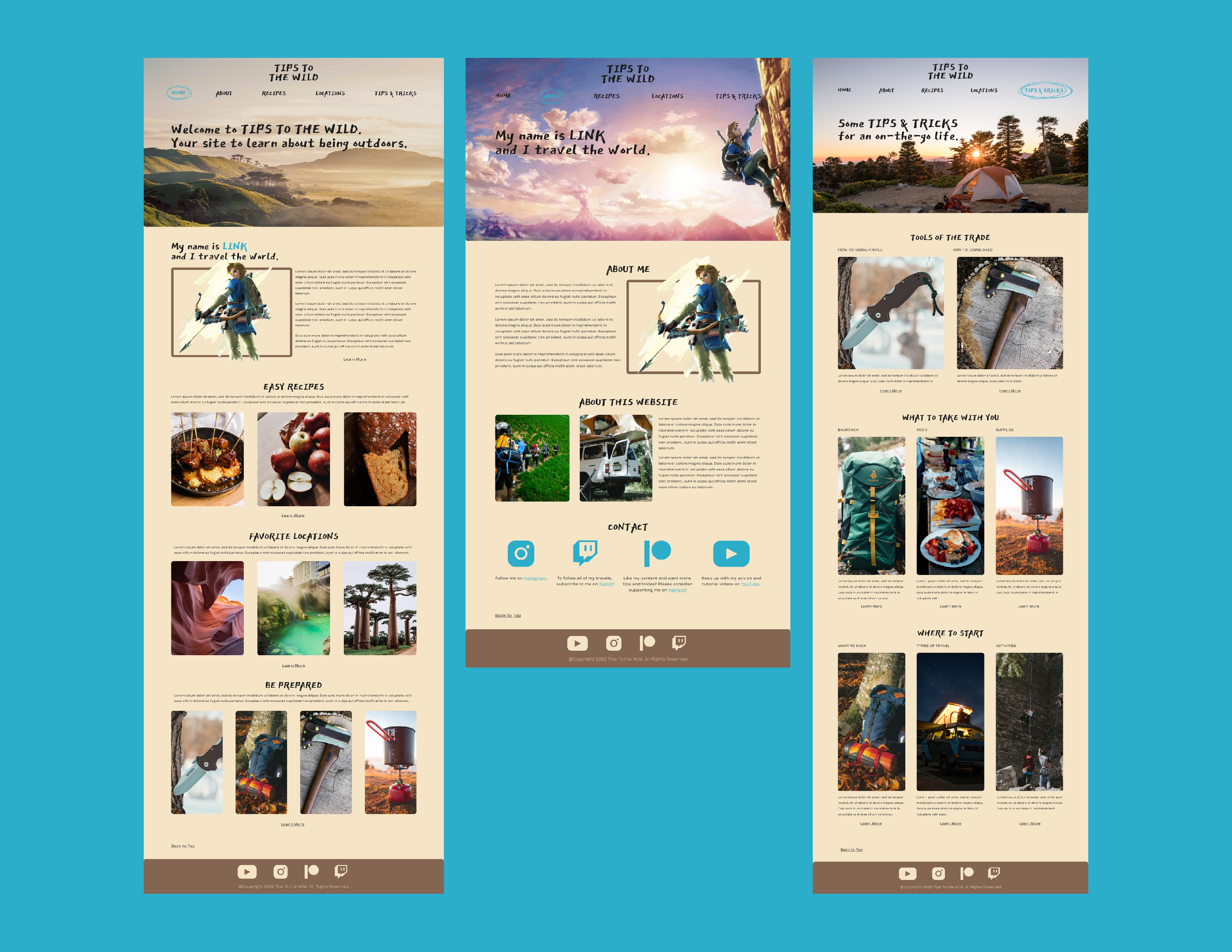 The goal of this project was to build a responsive website for any chosen character. I decided to go with 'Breath of the Wild' Link as my character and make him a travel blogger site. On this website he would spread tips and tricks to backpacking, hiking, camping and other outdoor activities. He would also have a food section for his favortie recipies and a locations page to document the best places he'd been. I designed and prototyped this site in Figma and tried to keep it true to the 'Breath of the Wild' aesthetics while also incorperating my own design sense. The mobile version was made first and then scaled up for desktop.