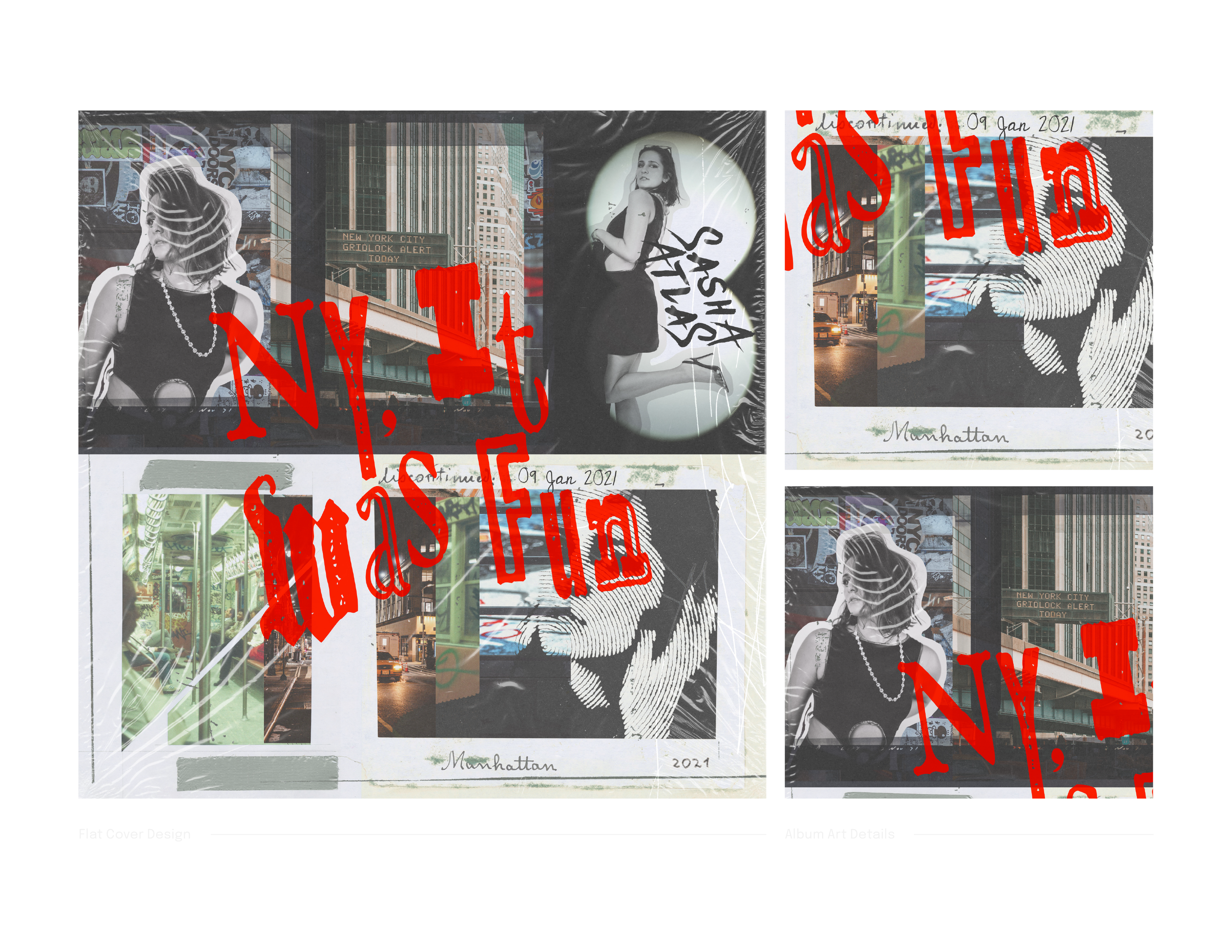 I’ve made two single artworks for the musician Sasha Atlas, one for her song “HOWL” and the other for “NY, It Was Fun”. For “HOWL” Sasha asked that I illustrate a spooky scene based on the lyrical content of the song. I created the illustration on Procreate and exported it into Photoshop to add her logo and typography. “NY, It Was Fun” had a completely different vibe and the artist wanted a grunge-y collage about New York. I created the design in Photoshop with overlays and effects to achieve the final look. You can find the official artwork on Sasha’s Spotify page here.